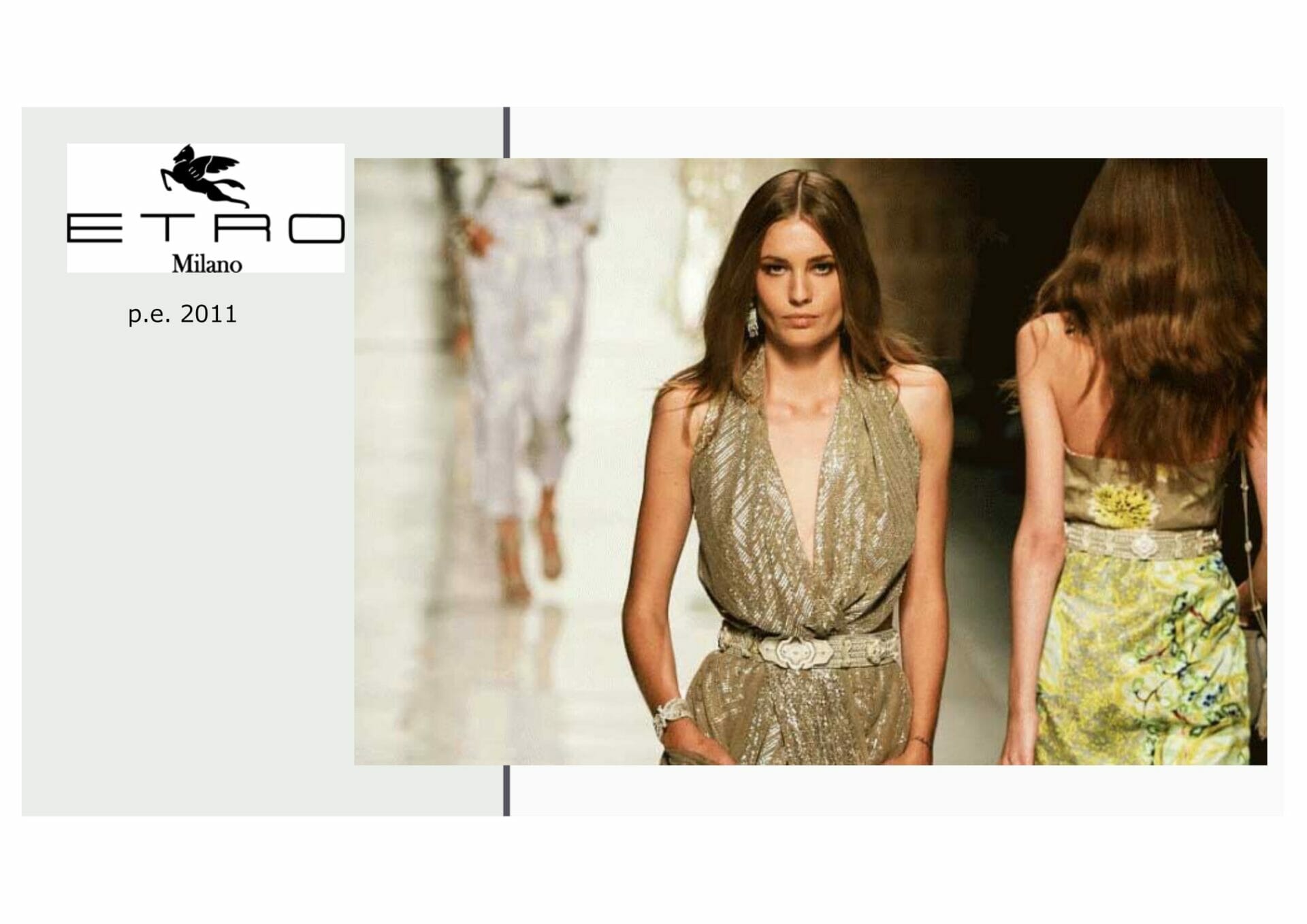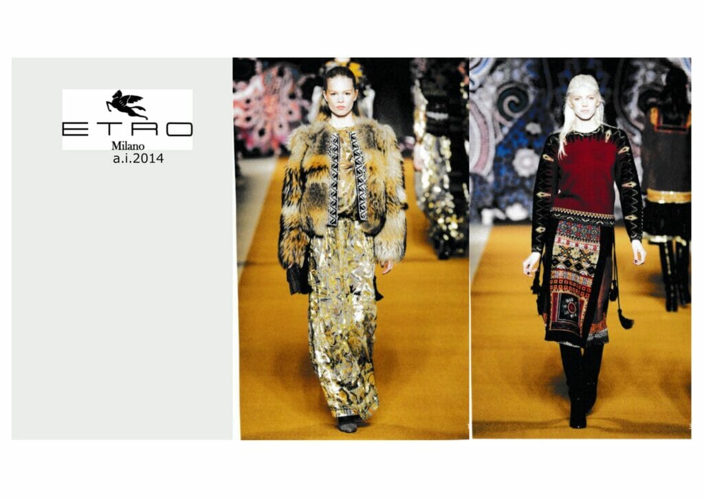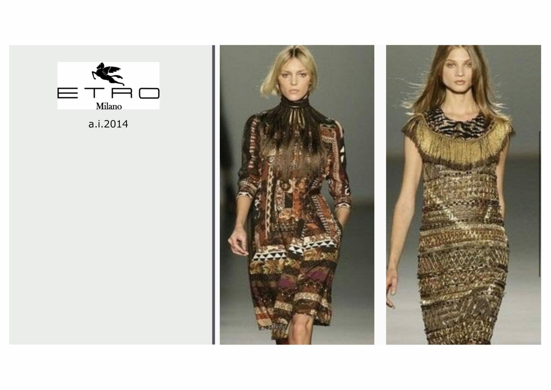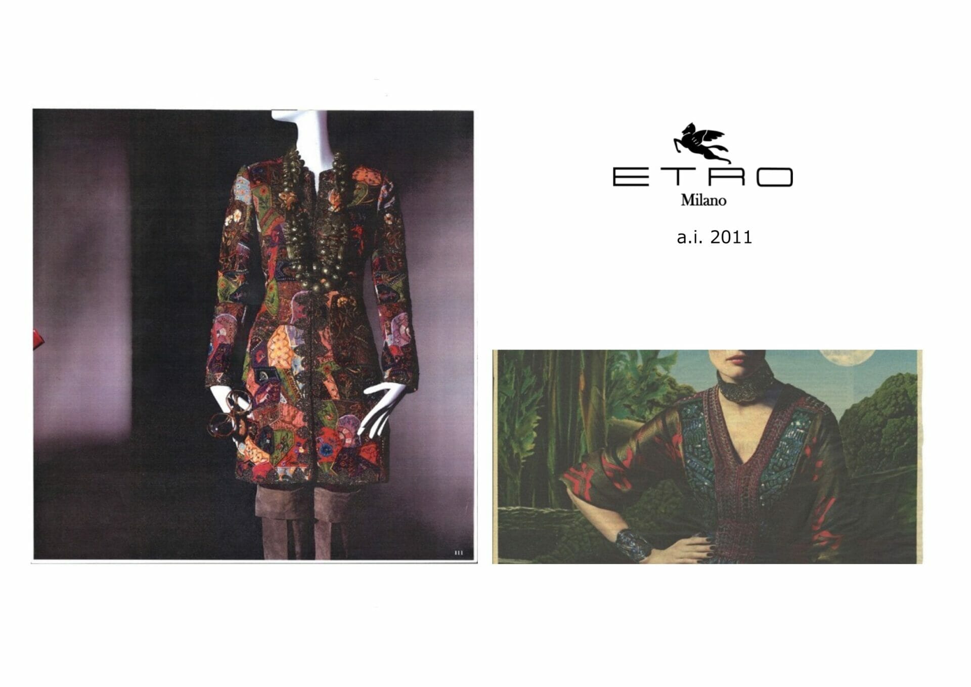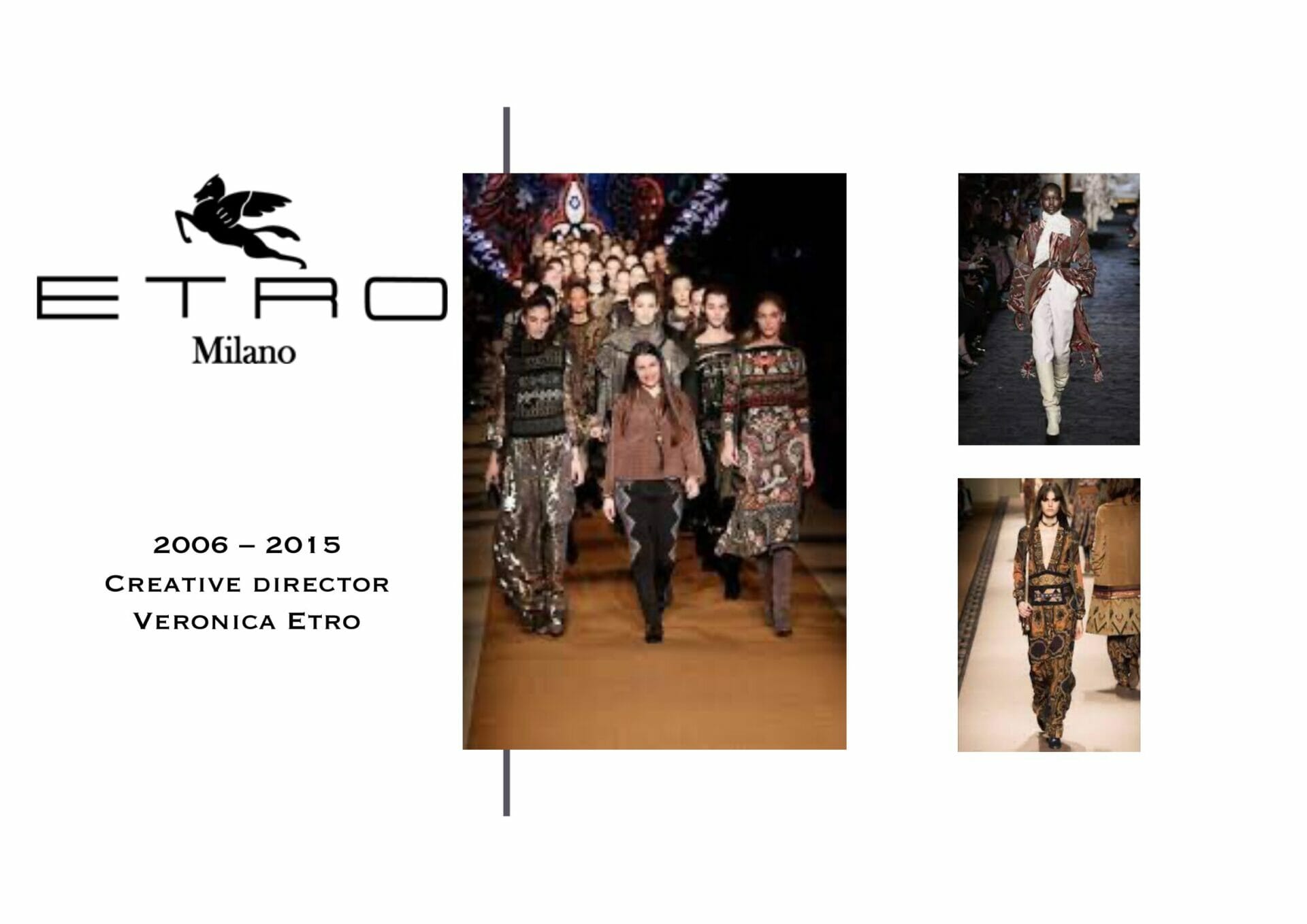 Etro is an Italian luxury fashion house founded in 1968 by jmmo Etro. Produces collections of men’s and women’s clothing, and other collections including accessories, fragrances, and home furnishings. The fashion house is famous for its paisley designs, which it began producing in 1981. Kean Etro is the creative director of the Men’s collections, for which he draws inspiration from his travels and the different cultures he comes into contact with Veronica Etro is creative director of the Women’s line, her first collection in 2000. For over 15 years I have designed and developed, embroidery, trims prints and special fabrics for the maison.