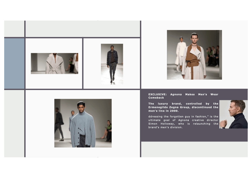 In his past professional experiences Simon Holloway has acquired a deep knowledge of both the luxury ready-to-wear and accessories industries by conducting his business in London, New York and Milan. Prior to his arrival at Agnona, he held positions as creative director and Head of Design for a number of luxury brands such as Narciso Rodriguez, Ralph Lauren, Jimmy Choo, and in Tod’s Group, for the Hogan brand.
